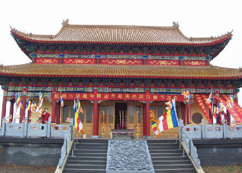 胶州市洪福寺在各级领导的关怀下,在上正下如法师的住持下,于2009年11月17日阿弥陀佛圣诞日,在胶州市胶北镇开工建设。在各大善信的积极参与配合下,仅用了半年时间就已初具规模。天时地利人和造就了一方圣土,特别是南竹北移的成功,成片的竹林使寺庙显得更加宁静,祥和,竹林下,善信们种植的瓜果蔬菜,即节约了土地,改善了生活,又使人们体会到了劳动带来的快乐。