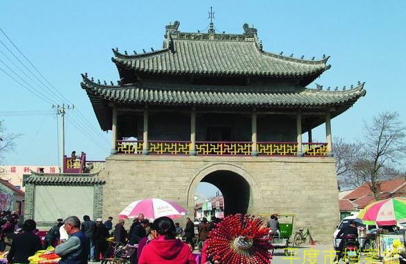 千佛阁座落在旧平度城东关街的最东端,一向以气势雄伟、造型俊美为游人所叹赏。昔年,它兀立在关厢之外,雄踞于通衢之上,所以登临者留下了“霄汉悬飞阁,诸天一径通”,“朱栏凌树出,碧瓦与云齐”,“大野含风行,孤城落日低”等佳句。