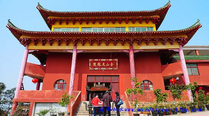 本名“大金山寺”,位于抚州市临川区云山镇境内,进贤、临川、东乡三县交界的金山岭(又称金峰,海拔269.5米)上,由山上、山下两部分组成。该寺背倚金峰,俯临抚河,占地面积一万多平方米,气势恢宏,金碧辉煌,是弘法一方的佛教圣地和重要的旅游区。