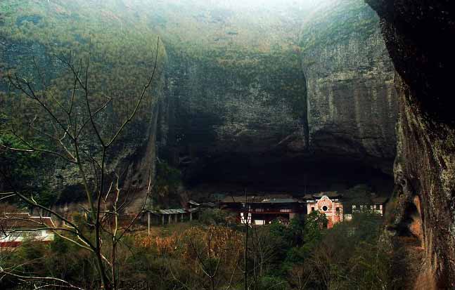 外岩,又名前岩、长工岩、普陀岩,越普陀桥入岩内,岩高8—10米,宽30—53米,长5—10米。—座木结构的普通梵宇依岩而建。沿曲折山径和婉蜒溪流进入峡谷,溪水清澈,游鱼可数,谷林幽深,鸟鸣可闻。行200米抵中岩,中岩洞高10—12米,宽50—93米,长10—50米,可容纳百余人。由中岩拾级而上,200余米处,古松关侧一株古“九月桂”立岩旁,到9月,以浓香迎游人。穿关越鸣春桥,便到后岩。后岩为龙凤岩的主体,三峰鼎峙,势凌霄汉。岩在中峰(剪云峰)下面临溪涧,左似游龙,右像凤翥,所以命名为龙凤。入春,岩顶水沥喷雪飞涛,晴天也散雨。顺治十二年(1655)镇江司理沈宜游此,改题“青雨岩”。 后岩座西南,面东北,岩高30—40米,宽40—56米,长10—22米。