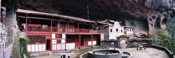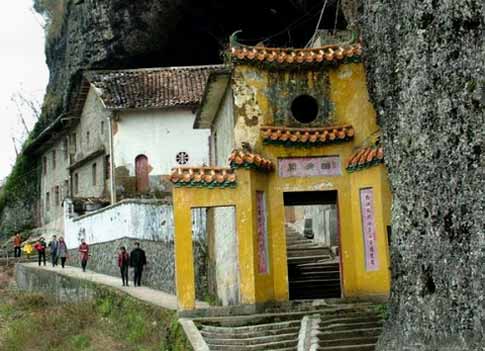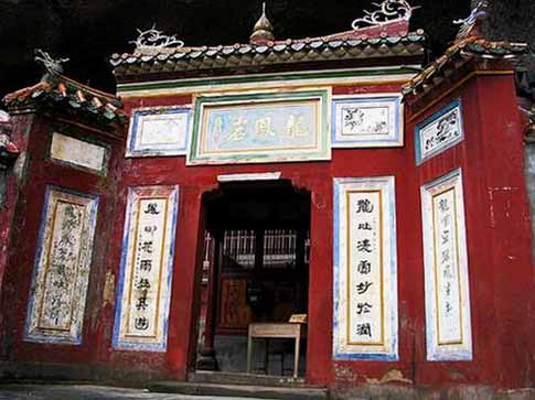 岩内龙凤岩寺院--“青雨古寺”,建于明弘治年间。民国初年毁,民国二十三年(1934)重建。据《广昌县志》记载:明朝弘治初年(1488)僧慧庆发起募捐集资创建龙凤岩佛宇,主要建有大雄殿,天王殿、观音殿、毗芦殿、方丈室、客堂等,其建筑面积达1500平方米,门楣上“天然佛地”四个苍劲有力的大字,两侧龙凤呈祥、瑰丽眩目的泥塑浮雕图案,仍然显出左龙右凤,栩栩如生。现在的佛殿,随洞而设,以天然岩壁当殿顶,共分三层。一楼为小客厅,迎接各方宾客。二楼左右两殿为禅房,共有禅房100间;三楼为大雄宝殿,殿宇椽摩栋接,堂皇秀丽,大殿上香烟缭绕,帷帐低垂,释迦牟尼站立中央,弥陀、药王侍立两旁。三尊大佛双脸微微下垂,两旁十八金身罗汉,雕刻精细,情态逼真。出正殿右后,越岩顶剪云峰,可抵岩上岩,因有7个不规则石洞而得名“七星岩”。