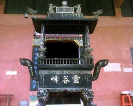 “观音堂”设于两殿之间进门右侧二楼边间,中座是至圣观音,右座自在观音,左座送子观音。堂内可供抽签之用,预知祸福,有求必应,许愿还愿。“天后宫”位于主殿左后方,住房的上层,供奉妈祖。“斗姥宫”在正庙右侧,虽有斗姥天尊之神,但由于灵谷峰面积有限,乃沿1950年前的旧习,拓为会议、会客、休息、住持大师卧室,置桌椅、茶水以饷来者,宫后设置天然水柜、厨房、饭厅,供来者及服务人员漱洗进膳之用,并有住房四间,储藏室一间,供来山者住宿之用。“怀恩堂”设在观音塔底,供奉着地藏菩萨。“观音塔”建在怀恩堂之顶上,天后宫左则,上塑三面观音像。观音菩萨全身及塔层以七彩灯泡点辍,观音菩萨正面雄视抚州市区,右面向着金溪,左面向着东乡,意为观音菩萨泽被三县。从地面至像顶共31.5米高。