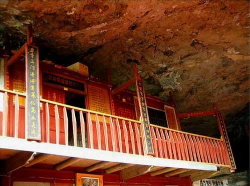 大觉岩位于资溪县泸阳乡朱岩村境内,坐落在赣闽两省交界处的武夷山脉西部的莲花山巅,海拔1300多米,距县城16公里。此岩洞像狮子张开的口,故又称狮子岩。大觉岩寺依洞形而建。
