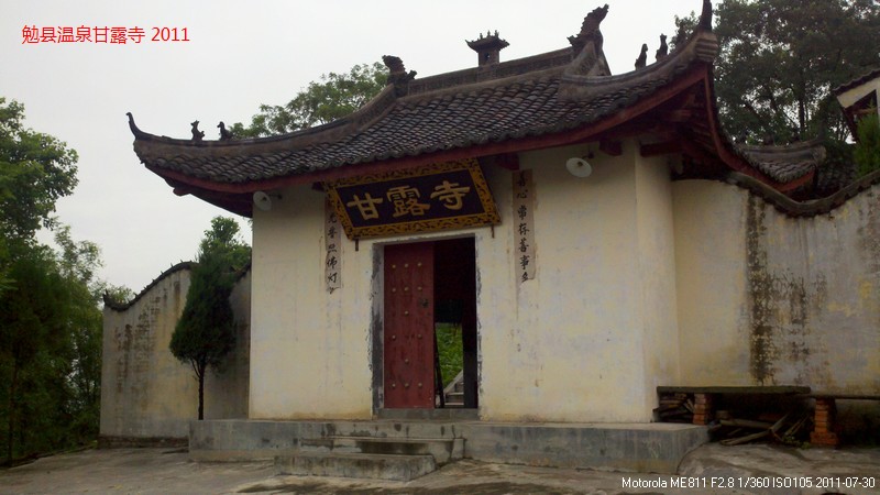 【甘露寺】坐落在勉县东南部约10公里的温泉镇(镇政府西侧约600米)一座叫马鞍山的小山丘上。寺庙虽小,但香火旺盛,有高僧2人长驻。以前叫龙王庙,是地方的求雨的庙堂,现在改名叫甘露寺,弘扬佛法,普度终生,救苦救难