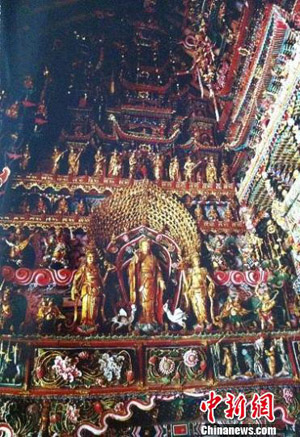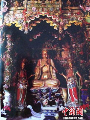 据介绍,大殿五尊主佛以及很多小型人物塑像都是用金箔贴体,金箔厚度只有白纸厚度的十二分之一。