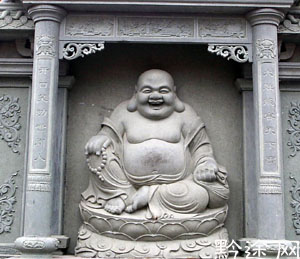 黔明寺自创建以来,中经咸同起义、抗日战争等重大历史事件,曾由寺庙变成祠堂,又由祠堂回归寺庙,并从普通佛寺一度变成研究场所,诚为非同寻常的宗教建筑。2006年国庆期间,黔明寺历经近一年的修复后,正式对外重新开放。修复前的黔明寺,地域狭小,占地面积不足2000平方米,一到大型会期、节日,消防和安全隐患十分突出。修复后的黔明寺占地面积达3210平方米,新建了寮房、偏殿、法堂、钟鼓楼、石山门,整个寺院布局合理,错落有致。图为修复后影壁正面的弥勒像。