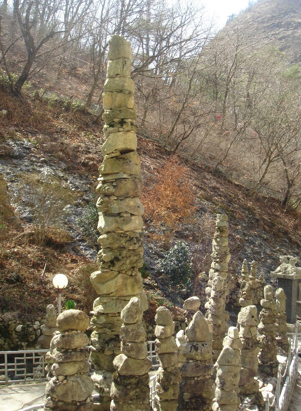 万佛塔是李甲龙居士自1920年起力替众生悔过,也作为自身苦行修道的一环,经过30年努力徒手建立起来的石塔。这些石头是李甲龙后士采自全国各地名山亲自背到这里的。这样堆积而成的石塔经过l00多年风霜也未曾倒塌。另外该万佛塔酷似印度的寺塔,是宗教造型艺术价值很高的作品。