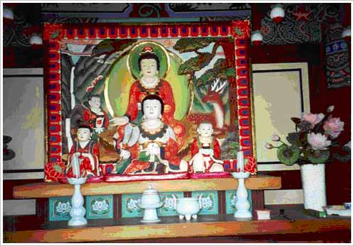 1990年开始重建工程,修建了禅院、寮舍斋、一柱门、主持室、卫生间等建筑。极乐殿被指定为地方有形文化遗产第87号,是正面3间、侧面3间的硬山顶式房屋。建造在略高烛台形式的台基上面,在未经加工的天然基石上竖立起略呈凸肚形的圆柱。从整体看虽然只是3间建筑,但是规模比较大,采用了重檐的屋顶也比较大,给人以一种威严感。这是这个建筑物的特征。极乐殿内墙上画有水月观音菩萨图和达摩图,是韩国寺庙壁画中屈指可数的珍品。极乐殿旁边有慈真圆造国师的浮屠。这个浮屠完全采用了8角圆堂形的形式,据推断是高丽末叶建成的。
