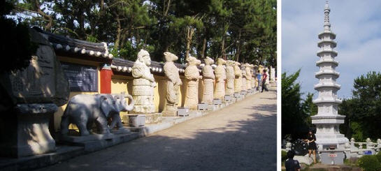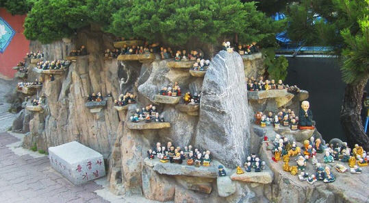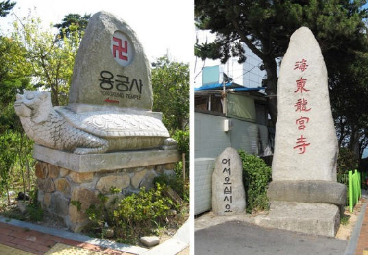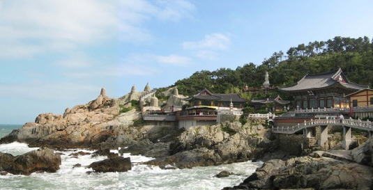 海东龙宫寺位于釜山东海岸,是韩国唯一一座位于海边的寺庙,周边景色非常优美。 龙宫寺由懒翁大师创建于1376年高丽遇王时期,依山傍海,内有海水观音、大雄殿、龙王堂、窟法堂、四狮子三层石塔等景观。大雄殿重建于1970年,建筑表层涂有丹青,多年来见证了历史的风风雨雨。大雄殿右侧石窟内是样式奇特的窟法堂,正面则是四狮子三层石塔。石塔的每一层都有4个分别代表喜怒哀乐的狮子,因此被称为“四狮子”。
