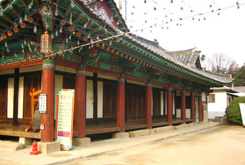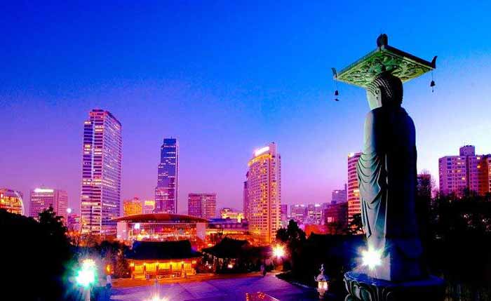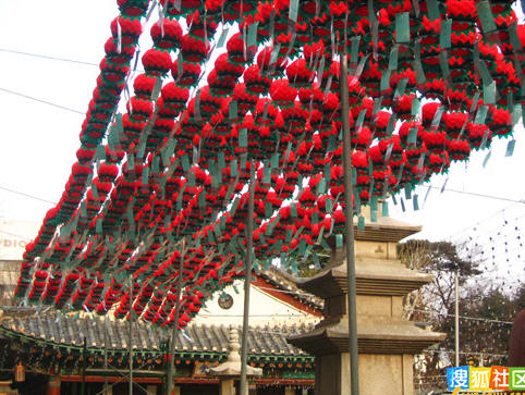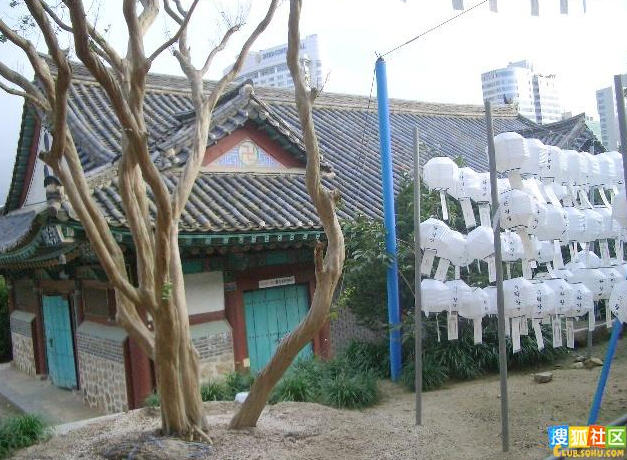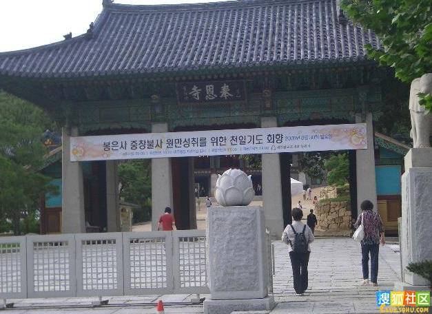 地铁2号线三成站下车6号出口。朝ASEM塔方向步行100米左右向左转,即可看到奉恩寺入口,右边就是奉恩寺。