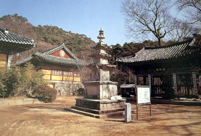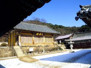 本寺伽蓝建于三段的高坛上,下坛的石造五层塔为新罗·文武王五年(665)所造。上坛的大雄殿,建于高丽·忠烈王三十四年(1308),曾被列为‘国宝’。与浮石寺的无量寿殿、凤停寺的极乐殿,同属朝鲜现存最古建物。殿内壁画,为高丽时代的作品,也极为著名。此外,境内尚有白莲堂、青莲堂、祖印精舍、真影阁、弥勒佛立像、满空塔等。 邻近之定慧寺,乃韩国著名之比丘尼诗人金一叶之居处。