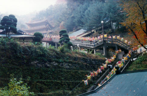 韩国汉城小白山救仁寺是韩国佛教天台宗的总本山,天台宗是二十世纪中兴的传统佛教宗派,目前有分寺及布教所共三百五十所,遍布全国,信徒达一百六十七万人。天台宗强调修行不应只在寺庙里,而应在行住坐卧及起居饮食的生活里,从身体的劳动中,不断地审视洗涤且修练自己的内心,因而有所谓的“昼农夜禅”制度。