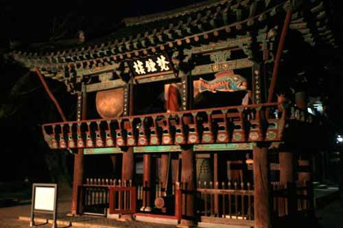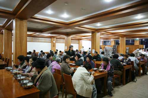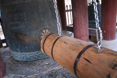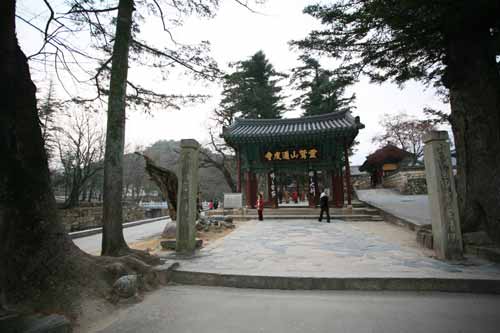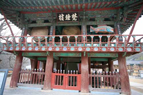 Mt. Chiseosan, has a beautiful view from the temple. The several hundred year-old pine trees lined up from the entrance to Ilju Gate, the small drum (used when praying in front of a Buddha figure) and bell, the sunset, the pond and the rocks and waterfalls behind the temple are grouped and called the 'Eight Famous Sceneries of Tongdosa Temple.'
