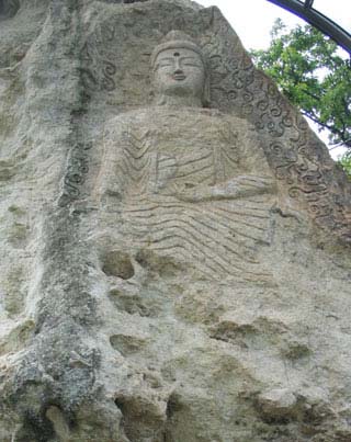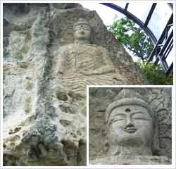 现在只剩下的法堂窟共有四个窟。它的前面由于涂壁和盖瓦,而它被认为家屋,但一进入就可以知道天花板和墙壁都是石窟。尽管北方墙壁挖龛室,并把释迦牟尼放在那里,但是磨损得严重而看不清表情。除了法堂窟以外,许多石窟被倒塌而只有形象。连接窟和窟的路联系到岩石里陡峭的阶梯。要您到达顶部的磨崖佛像,一定通过自然洞窟。尤其,最近修好向磨崖佛像的路,而你们可以安全地走路。