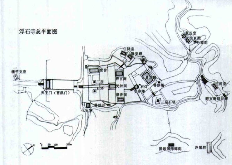 现浮石寺古建筑群单体众多。在入山线路主轴上,依次排列着“一柱门”、天王殿、梵钟阁、养门、无寿殿等。