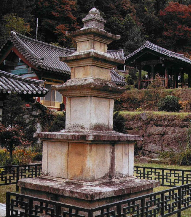 无量寿殿前的石灯(国宝17号),建于义湘大师创立浮石寺的文武王十六年(676年)。