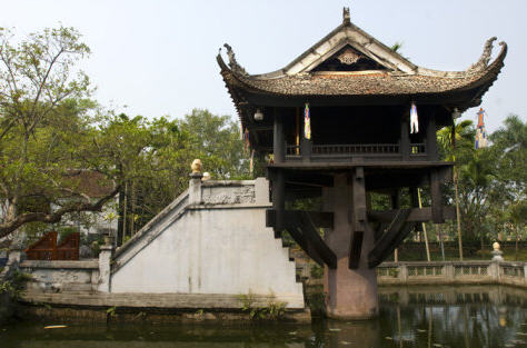 越南名胜古迹。位于河内巴亭广场西南,建于1049年的李朝。因该寺建在灵沼池中一根大石柱上而得名。灵沼池为方形,池周砖砌栏杆。寺为木结构,亦方形,每边 3 米,四面带廊。据传李太宗梦见观音菩萨手托婴儿,立于水池莲花台上,不久得子,乃下令仿出水莲花建寺,故独柱寺似出水莲花。直径 1.25米、地上高度4米的石柱象征花梗,石柱四周的 4根木支架如同花,寺身及四边微翘的屋檐,构成花瓣。寺正面檐下悬匾 ,匾题“ 莲花台 ”。由于几经修缮,现存寺的规模小于原建,但其艺术风格仍旧保留。