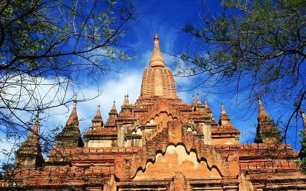 缅甸苏拉玛尼佛塔 Sulamani Temple:是壁画艺术之塔,寺内壁画完整,有坐佛卧佛及蒲甘罕见的行走佛。