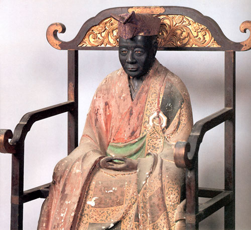 据传开山祖师无文元选禅师从中国返回途中,在遭遇台风船将要颠覆的危急时刻,突有一奇人现身于船上,大喝:“一定要平安地把开山禅师送到日本弘法。”遂指挥船夫水手把船安全驶回日本。