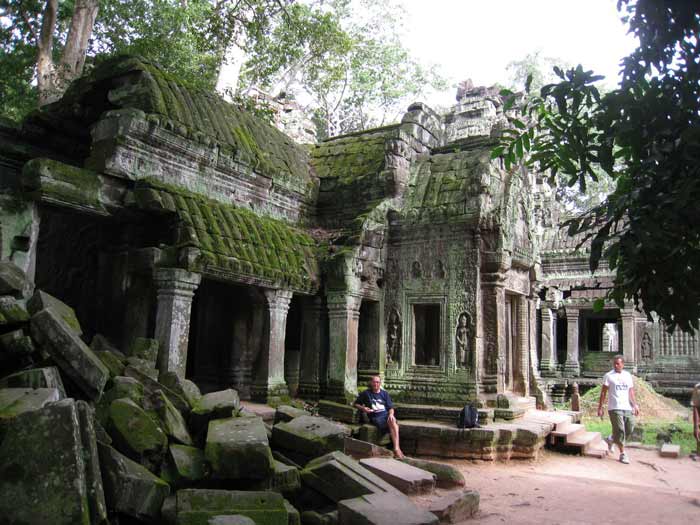 塔布隆寺建于12世纪中到13世纪初,是吴哥窟建筑群中最大的建筑之一,包括260座神像、39座尖塔、566座宫邸。考古学家们解码寺中一块梵语石碑后得知,当年塔布隆寺覆盖了3140个村庄,维持寺庙运作须花费79365个人力,包括18名高级牧师、2740名官员、2202名助理和615名舞蹈家,内有一套重达500多公斤的金碟、35块钻石、40620颗珍珠、4540颗宝石……作为吴哥最具艺术气氛的遗迹,塔布隆寺的吸引力在于,跟其他寺庙不同,他几乎被丛林所吞噬。圣剑寺也有跟塔布隆寺类似的情景,巨大的树木从建筑物上拔地而起,触目惊心!这些树在当地人看来,树干粗大但是中空,完全无用,名为思胖。几乎就像当初欧洲探险家首次发现吴哥寺庙一样,一看到它,立刻会想到记忆中的神话世界,简直是太不可思议了!