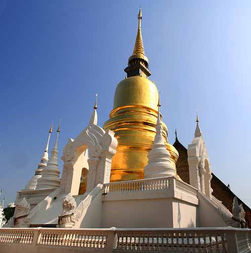 松达寺(Wat Suan Duk)──泰文意思是“花园寺”。此地位于清迈古城外西边,建于公元1373年,原本是为佛学大师素玛那泰拉(Phra Sumana Thera)雨季时的居所,后曾成为纳兰泰王朝的“御花园”,传说在松达寺的最大佛塔下埋了佛舍利子,而每个超过一人高的白色塔林亦是纳兰泰王室过世后埋葬处。此寺有一座建于16世纪的青铜佛像,每年4月清迈泼水节的主要仪式都会在该寺举行。
