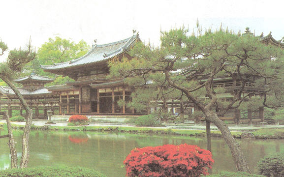 11世纪末,日本社会进入贵族专制的全盛时期,王公贵族们大量兴建府宅和别业,并在府宅和别业中建造佛寺。建筑结合本土和中国建筑的成就,趋向奢华富贵。一种名为“寝殿造”的新型样式开始在府宅和佛寺中流行,它为一正两厢式,廊柱相连,前临水池,楼水相应,令人倍感安宁闲逸。这些佛堂代表了当时日本建筑和工艺的最高水准。平等院的凤凰堂是最重要的寝殿造佛寺建筑,凤凰堂是该寺的主要建筑。建筑融入了贵族们对超脱现世,到达极乐的幻想。佛堂采用贵重的木材,并用珠宝装饰,门扇上雕饰着想象中异彩纷呈的极乐世界。正殿开间10米有余,进深2间半,四周有一圈檐廊,屋顶重檐歇山形。两翼伸出四间重檐的廊子,尽头形成厢房。整个平面犹如一只展翅的飞鸟,布局优美舒畅。