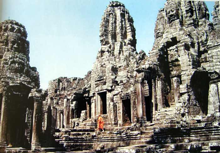 巴戎寺 (Bayon) 建筑形式之复杂与象征意义之强烈,在吴哥经历印度教的多神信仰和佛教之后,成为世界上最神秘与迷人的宗教圣地之一。身为国庙的巴戎寺 (Bayon) 经历多次建筑改变,造成今天所见丛林塔的形式。位居中心的四面佛塔群,原有 49 座,加上 5 座亦是四面佛塔式城门,代表当时鼎盛吴哥王朝所统辖的 54 个省份。巴戎寺 (Bayon) 位于吴哥城 (Angkor Thom) 的心脏地带,距离四座城门皆为 1500 公尺。正面面向的代表胜利繁荣的东方,外部被长宽各为 156 及 141 公尺的回廊包围,回廊墙面有浮雕装饰,以东侧南段及南侧东段较为精致。