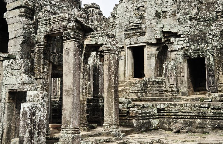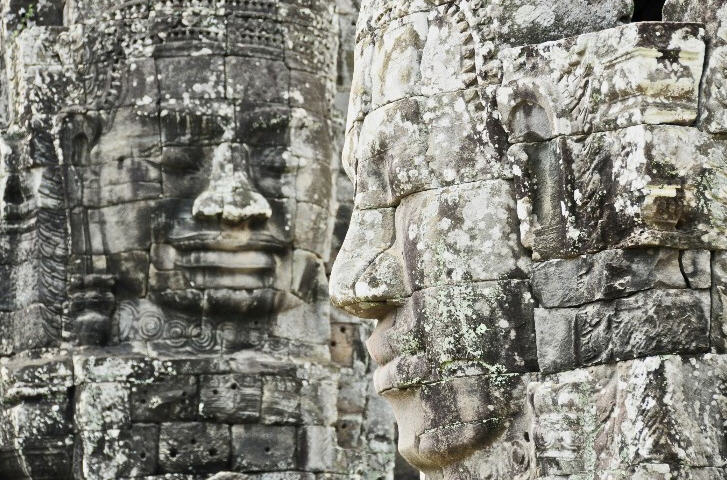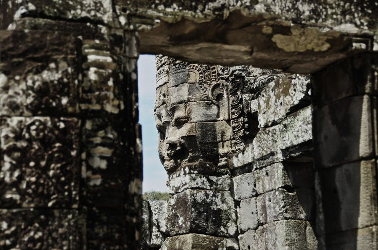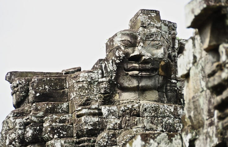 苏耶跋摩二世去逝后,吴哥王国陷入内乱,接着外敌占婆入侵,搜括破坏首都耶输陀罗补罗。公元 1181 年,阇耶跋摩七世 (Jayavarman VII) 打败占婆人,也就是那位让后世永远忘不了他微笑面容的吴哥国王。和过去的国王完全不同的是,阇耶跋摩七世 (Jayavarman VII) 是一个虔诚的佛教徒而非信仰印度教。阇耶跋摩七世 (Jayavarman VII) 夺回沦陷的首都吴哥后,为了纪念这场赢来不易的胜战,他将原本只是一座小庙的巴戎寺 (Bayon),在短时间内扩建成具备圣殿、藏经阁、修道坛等规模的皇家寺庙,并且命令匠师在寺庙回廊上,雕刻了这次不朽的战功,铭记着密密麻麻的浮雕历史,告诉后人这场可歌可泣的战役。