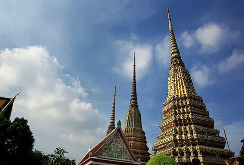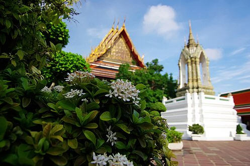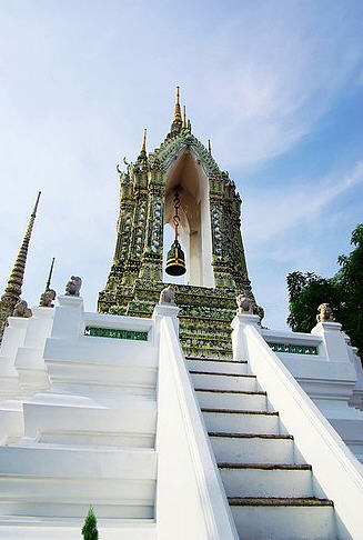 曼谷卧佛寺,又名菩提寺,位于曼谷市中心大皇宫的南面,占地8万平方米,建於 1793年大城王朝时代,是拉玛一世时代的建筑物,也是曼谷最古老和最大的寺院。分为佛堂、僧舍和佛塔几部分,规模及佛塔佛像数量均居曼谷佛寺之冠,有“万佛寺”之称。因其拥有大量佛像和佛塔而闻名。