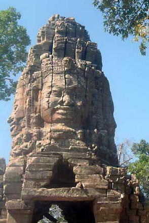 此处位于吴哥窟南部33公里处,四周长、宽据说原有1000公尺、600公尺,尊奉婆罗门教和佛教,当地人称之为“小吴哥窟”, 但是现在崩落毁损的情况相当严重,目前只剩下长、宽各为40公尺及30公尺的内层围墙了。 4面方位开有4座门廊,主殿面向东方,北侧突出门廊上有6臂保护神Vishnu的浮雕。由东门走进来,会经过一道长长回廊,长廊顶端有成列仙女Apsara的浮雕,透露出飘逸浪漫气息,所以有“舞者长廊”的美誉。神殿内则是供奉“智慧女神”Prajnaparamita,传说是依据JayavarmanⅦ的母亲形象而塑造雕刻。还有一处内室称为“回音塔”,站在塔里面的某一定点,用力拍胸脯时会产生宏亮的声声回音,真是神奇又有趣。