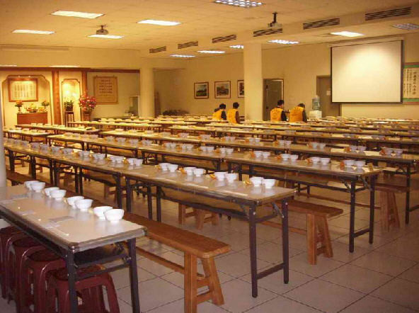 每逢星期六和星期日中午寺院摆素斋免费供来客用餐,任何人来吃都欢迎。午餐有11点和12:30分两场,赶不上第一场就赶第二场。有义工为用斋客人添饭。