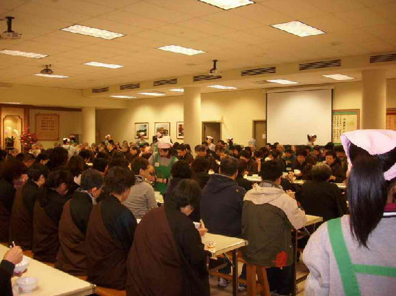 学佛乃是逆生死流而行的一种生活方式,是要去找苦吃的,不精进前行,那就是在往下堕落。但对于何谓精进修行自己始终没有概念,这次去打佛七,才真正知道了什麽叫修行。感谢诸佛菩萨及护法龙天的慈悲护念,让我看到了女人学佛的好样子。30多位很年轻的女众师父,她们365天都在修苦行,每天都是从早上2:45打板起床,3:15上早课,白天出坡劳动,各安本位,恭恭敬敬为大众服务,那里每日都对外供斋,午餐和晚餐, 随便什麽人都可以来吃,师父们慈悲,要广结善缘,她们自己全部都是过午不食的,但却要全天不停的做饭,做菜,因为每日用餐的人数都有好几百,周日那天是上千人,广场上排着长长的好几排等候的队伍,一直要吃到下午2-3点钟,看着吓人。劳动量可想而知。还有,我们寮房的厕所全部是师父们来打扫,我们全都看到感动不已,哪里敢懈怠,一直要到晚上10:10打板才会休息睡觉。佛七外他们的每日晚课全部是跪诵大般若经。 我问她们苦不苦,他们却说不苦,世间要想成就点事业,还要努力吃苦头,何况成佛出离生死的大事。