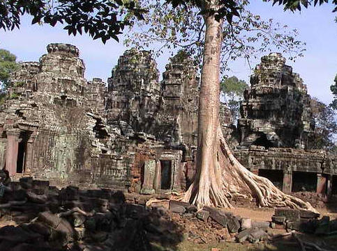 Banteay Kdei is a temple at Angkor, Cambodia. It is located southeast of Ta Prohm and east of Angkor Thom. Built in the late 12th to early 13th centuriesCE during the reign of Jayavarman VII, it is a Buddhist temple in the Bayon style, similar in plan to Ta Prohm and Preah Khan, but less complex and smaller. Its structures are contained within two successive enclosure walls, and consist of two concentric galleries from which emerge towers, preceded to the east by a cloister.