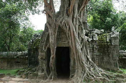 塔松寺(Ta Som Temple)没有经过太多的修复,有很多树盘据在建筑上。