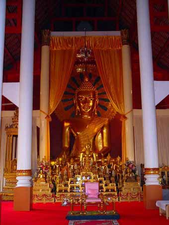菩兴寺的“兴”字意思是狮子,所以菩兴寺又称为狮子寺。原来寺院里供奉的佛像,为狮子吼佛像,于1400年从泰国清莱运到这里,据说这尊狮子吼佛是复制品,不过复制的部份有两种说法,一说是整尊都是复制品,真品放在清迈国立博物馆内,一说是只有头部是复制品,因为公元1922年时头部被人偷走了。