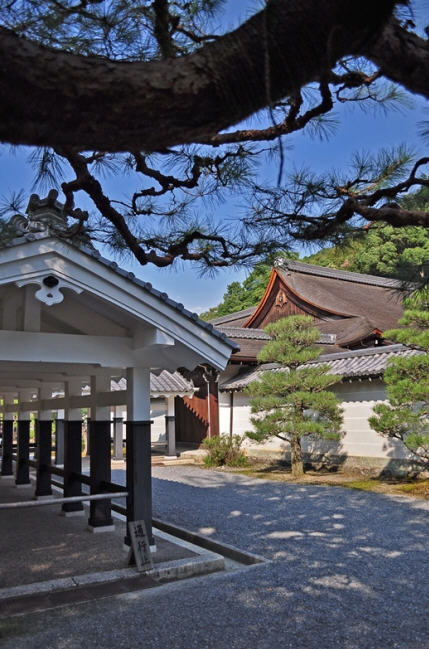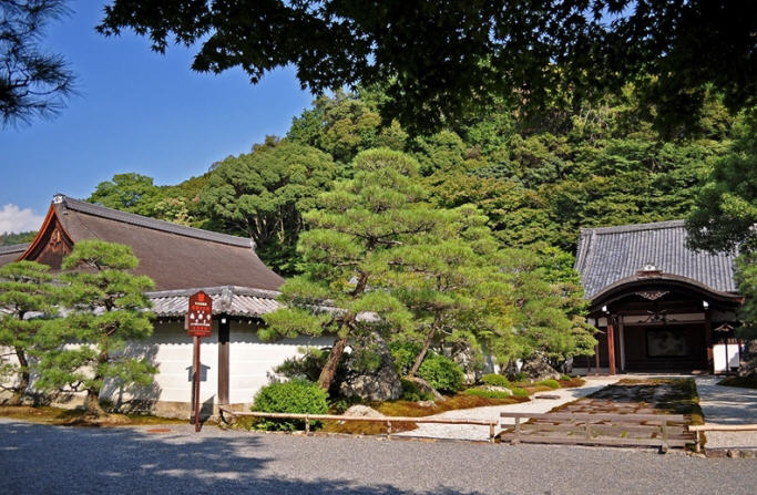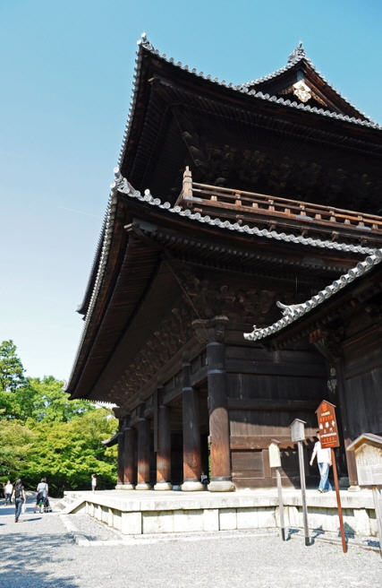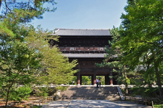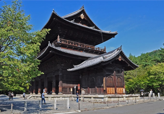 “南禅寺”是京都名剎之一,为临济宗南禅寺派的大本山,正式名称为“瑞龙山 太平兴国南禅禅寺”。南禅寺始于镰仓后期的正应4年(1291),是开山祖师无关普门将位于东山的开基人龟山上皇的离宫改建的禅寺。作为天皇中首位皈依禅宗的法皇亲撰愿文“禅林禅寺起愿事”,规定“日本最优秀的禅僧”为南禅寺住持,故“南禅寺住持”成为超越法系、流派的最高禅僧的代名词,所以梦窗疏石、虎关师炼、春屋妙葩等高僧大德前后被委以历代住持。伽蓝因明德4年(1393)和文安4年的大火及应仁之乱(1467)等几近荒废,但在江户初期奇迹般得以复兴。现在仍可从巍峨耸立的三门楼上俯瞰京都。南禅寺因与德川幕关系密切得以重建和兴隆,从楼上可以望见御所的结构,似乎蕴涵着某种意图。