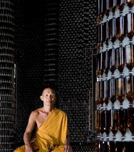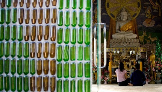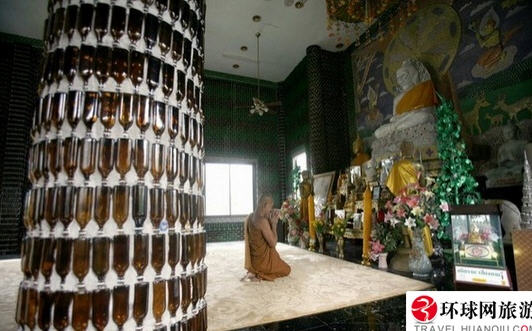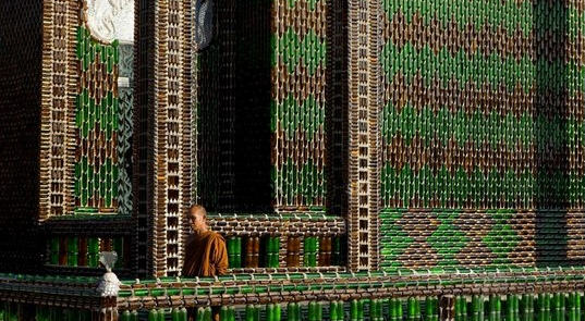 泰国四色菊府一家寺院的僧人花费25年时间、用150万个废弃的啤酒瓶搭建起了一座“百万瓶寺”。“百万瓶寺”是世界上唯一全部用啤酒瓶建造的寺庙,目前它已经成为东南亚地区热门的旅游景点。
