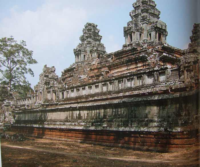 吴哥王朝早期的 Bakong 和 Bakheng 两座寺庙,皆仍有以砖造的建筑结构存在。到了阇耶跋摩五世 (Jayavarman V) 时,出现了第一座完全以砂岩建造的高棉式神庙达高寺 (Ta Keo) 。此庙四周原有护城河围绕,护城河上有以 naga 神装饰的通道,不过现在已经仅剩遗迹。这座神庙的外墙底座是以红色的砂岩为建材。在完成建筑的主体结构,开始进行初步的细部装饰,就停止这座神庙建筑的进一步的雕琢工程。