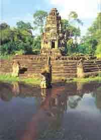 中央巴莱湖四方的堤坝上各有一个雕像,东面是人头像,西边是马头像,南边是狮子头像,北边是大象头像。这四个雕像,实际上是通向四个小湖的出水口,当中央巴莱湖水涨到一定程度时,湖水就从这四个出水口流进小湖里去。
