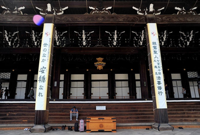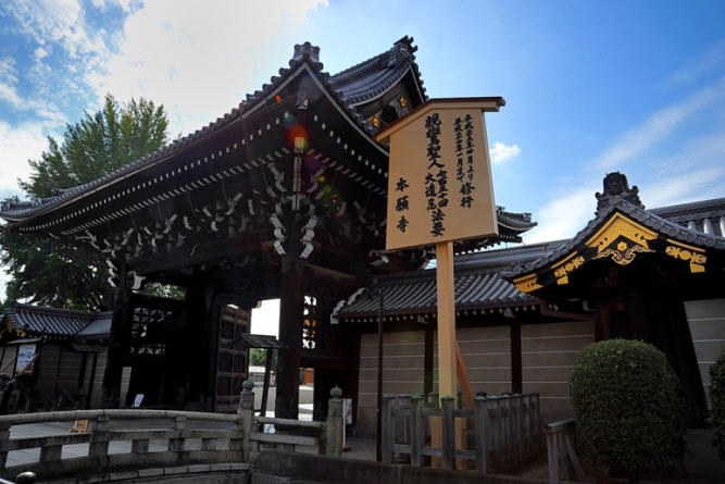 当年创始人亲鸾圣人的女儿觉信尼将亲鸾的坟墓迁至东山大谷,建造了御影堂(公元1272年),为本愿寺的起源。战国时代饱受战乱迫害,于公元1591年(天正19年),由同是信徒的丰臣秀吉捐款移至现在的地址。