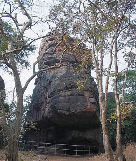 The Rock Shelters of Bhimbetka are in the foothills of the Vindhyan Mountains on the southern edge of the central Indian plateau. Within massive sandstone outcrops, above comparatively dense forest, are five clusters of natural rock shelters, displaying paintings that appear to date from the Mesolithic Period right through to the historical period. The cultural traditions of the inhabitants of the twenty-one villages adjacent to the site bear a strong resemblance to those represented in the rock paintings.
