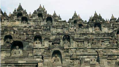 圖一 婆羅浮屠佛塔遠景 圖二 婆羅浮屠佛塔近景