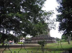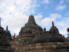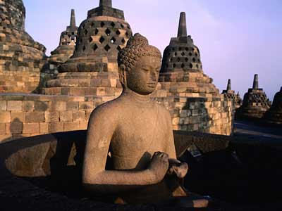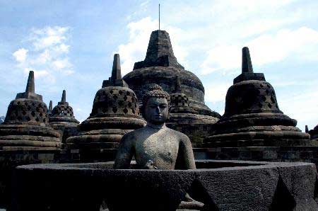 婆罗浮屠此字的来源是取自梵文,意即是在山上寺院,建于八世纪的 Cailendra 朝代,位于Magelang,即三宝陇东南90公里,或者日惹西北42公里可搭乘计程车或公共汽车前往,此庙是世上最大的佛,塔,庄严地耸立在丘陆上,俯视绿田及远处的山丘。