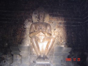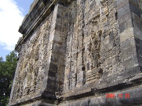 在各方形层的的栏杆上,每隔一定距离配置一个向外的佛龛,共432个,龛内各安置一尊大坐佛。佛像的手势有5种,可能是金刚界五佛。