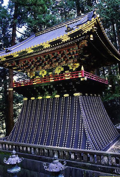 大猷院灵庙唐门、夜叉门、皇嘉门与建造大猷院灵庙时一起,于承应2年(1653年)建造,大猷院灵庙唐门为正面唐门,屋顶上的前后屋檐采用中国式山墙人字板结构,精细的地纹雕刻及透雕式金属装饰部件等,足见其在构造、创意和技巧上均采用了优异的技术。