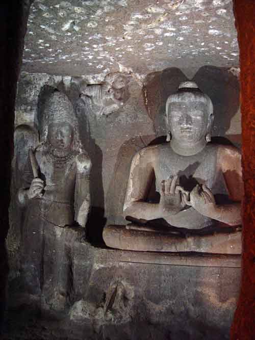 400年之后,笈多王朝又开凿了规模更宏大的石窟。包括三座佛塔圣殿,除一座(29号洞内)未完成外,另两座都模仿过去的式样但又有创新,即在中央佛塔雕刻了佛祖的形象。寺庙的布局也发生了变化,在正门对面墙上的雕刻了巨大佛像,居高临下俯视整个大殿。