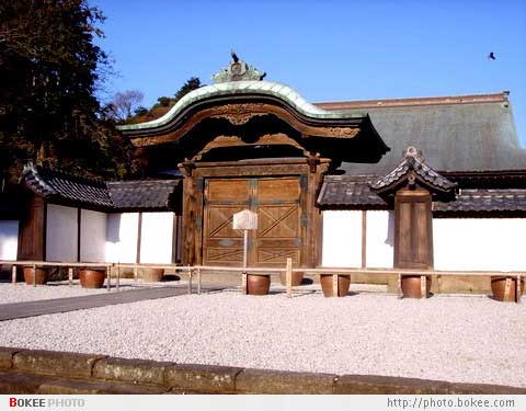 作为镰仓时代第一的禅宗寺院,建長寺拥有一系列具有禅宗特色的建筑结构:单坡屋顶;用于加固圆柱的隅撑;砾石的墙基座墩;支持于砾石座石的圆柱……本山大门的拱形披檐和弧齿形山墙则是江户时代的添加建筑。