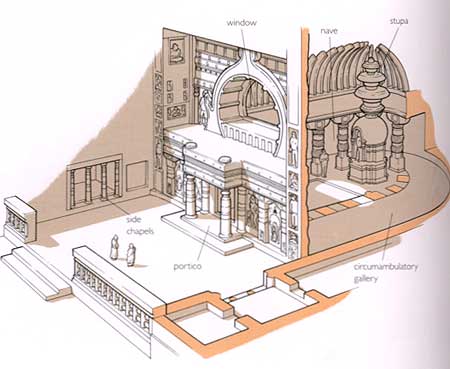 阿旃陀石窟艺术,可分为建筑、雕刻和壁画 3部分。