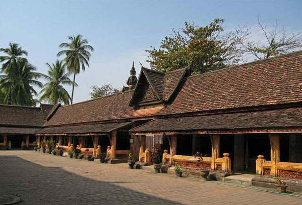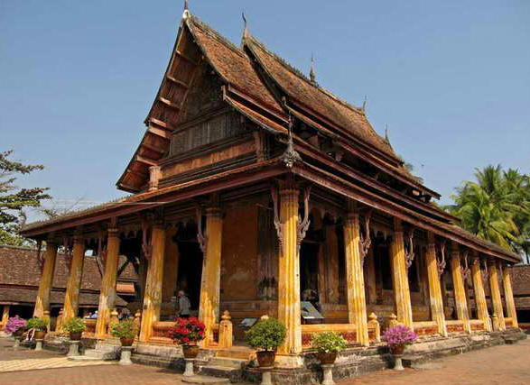 施沙格庙wat si saket 始建于1818年,是根据澜沧王国时期最后一位君主阿努冯国王的命令而建的,寺庙占地面积大,气势宏伟,融汇了多种建筑艺术,饰以金、银箔和彩色玻璃,令人惊奇,现已成为珍藏老挝古代文化艺术品中心。