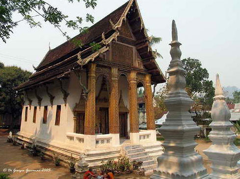 Between Wat Wisunarat and the Nam Khan stands Wat Aham, which was formerly the residence of the Sangkharat (Supreme Patriarch of Lao Buddhism). Two large banyan trees grace the grounds, which are semideserted except for the occasional devotee who comes to make offerings to the town's most important spirit shrine at the base of the trees.